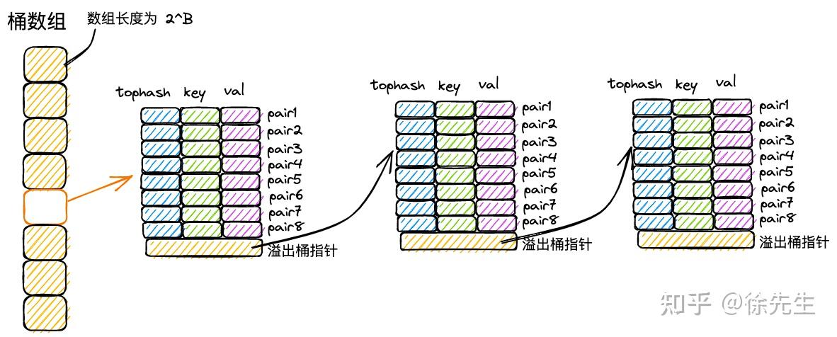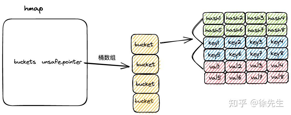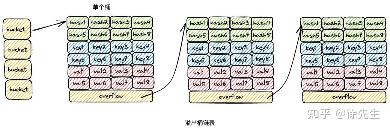 type evacDst struct { b *bmap // current destination bucket i int// key/elem index into b k unsafe.Pointer // pointer to current key storage e unsafe.Pointer // pointer to current elem storage }