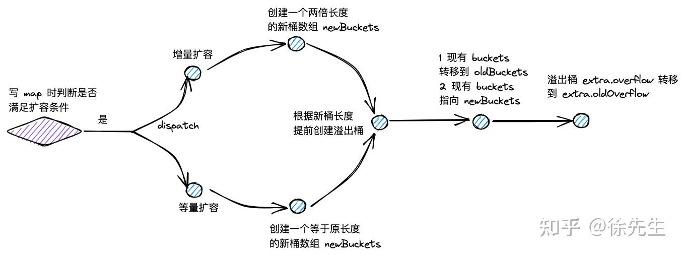 map 采用的是渐进扩容的方式,避免因为一次性的全量数据迁移引发性能抖动.